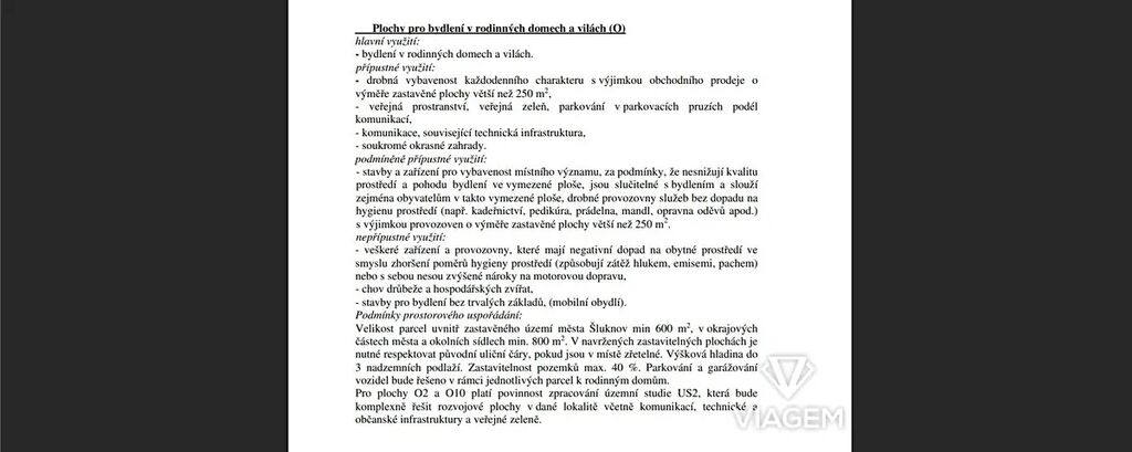 Pozemek je zastavitelný s připojením na dostupnou síť el. energie, voda i kanalizace. Na pozemku lze postavit rodinný dům o 3 nadzemních podlažích, kdy koeficient zastavění představuje 40% plochy pozemku. Parkování a garážové stání je řešeno po individuálně jednotlivých parcelách. Je zde možnost táke vybudovat drobnou provozovnu. Veškeré další informace jsou obsažené ve fotodokumentaci pozemku (textová část ÚP).