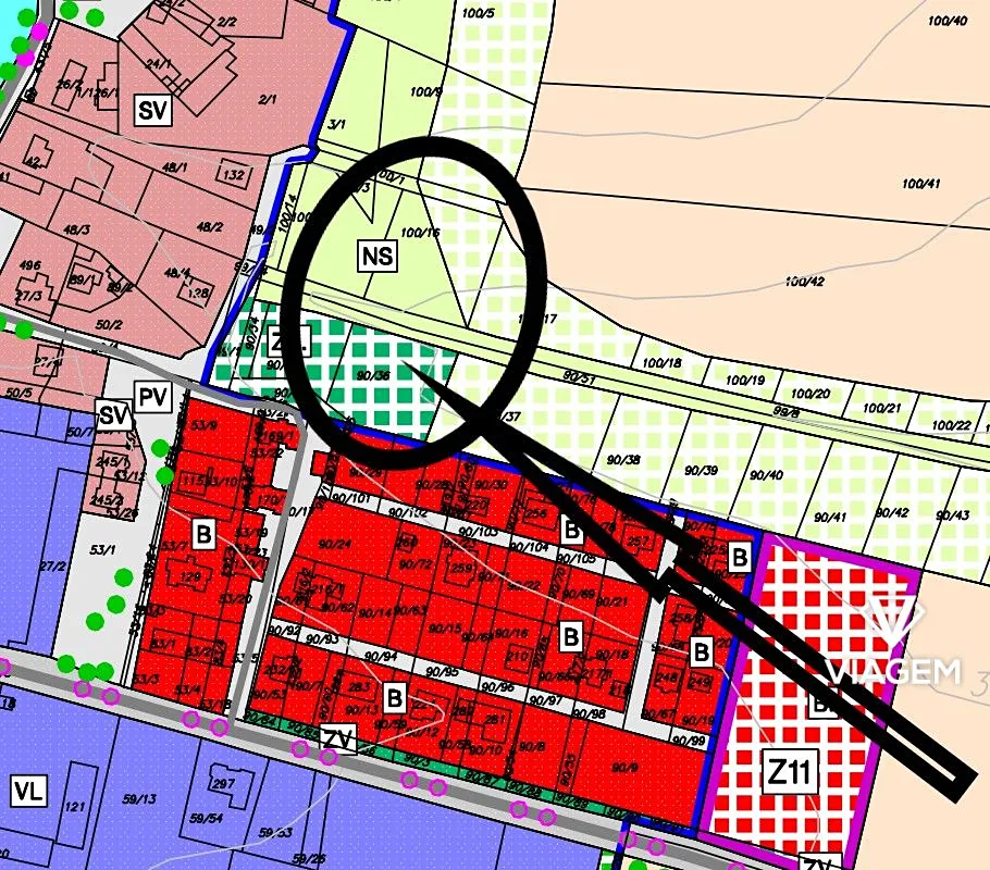 Tento pozemek je zapsán na LV 943 pod parcelními čísly 90/36 a 100/16 o celkové výměře 4 366 m2.