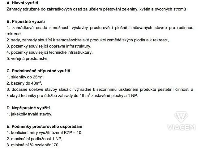 Územním plánem určeno k rekreačnímu a pěstitelskému využití