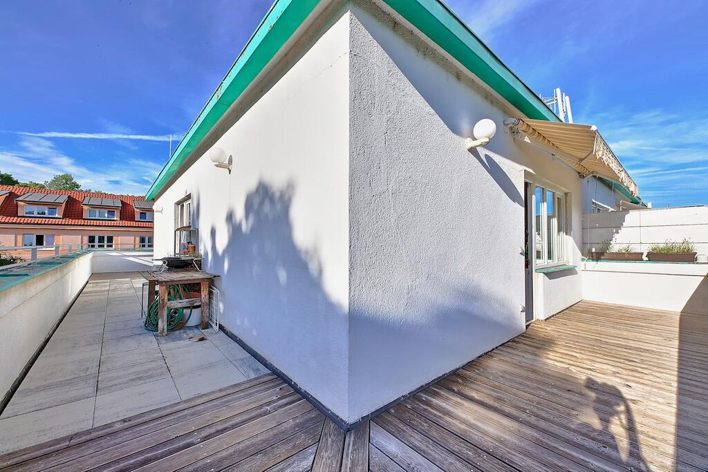 Dominantou bytu je velkorysá terasa - ideální místo pro vytvoření městské zahrady.