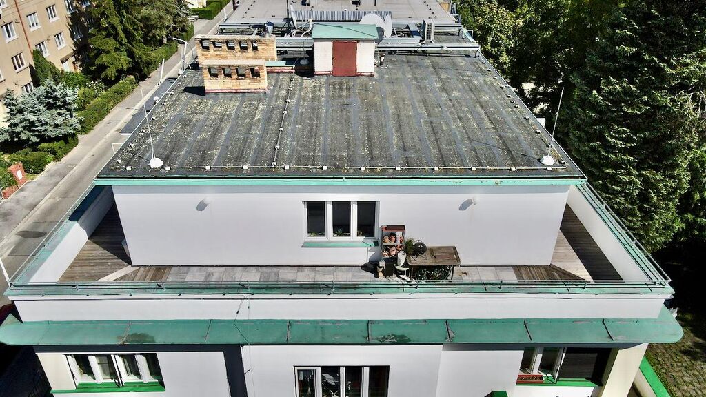 K koupi nabízím krásný, světlý byt o dispozici 2+1 s obrovskou terasou, který se nachází v posledním patře dobře udržovaného funkcionalistického domu bez výtahu z roku 1942. Dům i byt prošly v roce 2008 kompletní rekonstrukcí.