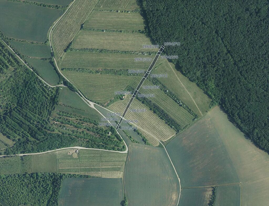 Pozemky jsou zapsány na LV 650 pod parcelními čísly 4015/70, 2864/710, 2864/652, 2864/596, 2864/574, 2864/556, 2864/502, 2864/501, 2864/458, 2864/405, 2864/342, 2864/341, 2864/305, 2864/266, 2864/225 a 2864/16. Mají výměru 3 042 m2. Pozemky spolu sousedí a tvoří jeden celek.