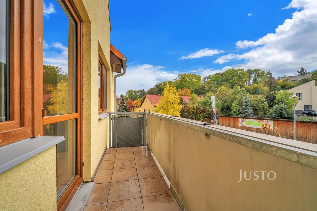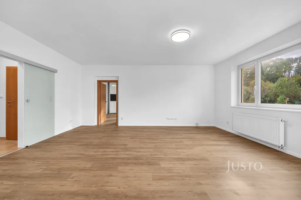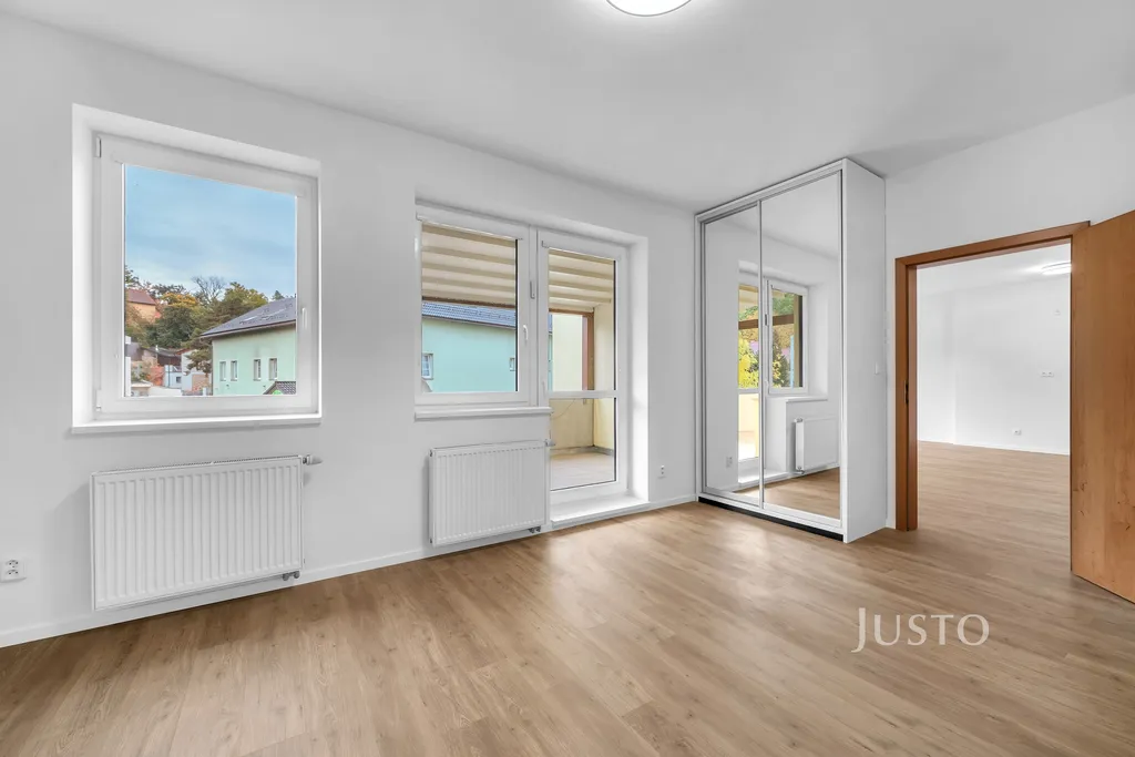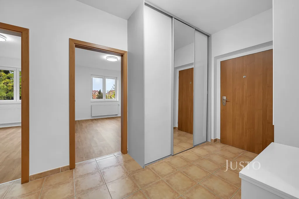 Hned po otevření dveří Vás přivítá světlý a vzdušný interiér s moderními podlahami a velkými okny, která propouští dostatek denního světla do všech místností. Byt má tři neprůchozí ložnice – ideální řešení pro rodiče i děti, které se tak mohou těšit na svůj bezpečný prostor. Obývací pokoj propojený s kuchyňským koutem, ze kterého můžete vstoupit přímo na rozlehlou terasu o ploše téměř 11 m². Tato terasa navíc nabízí dostatek místa pro rodinné snídaně, letní grilování nebo večerní posezení. Další bonus představuje útulný balkon orientovaný na jih, odkud můžete pozorovat krásy okolní zeleně.