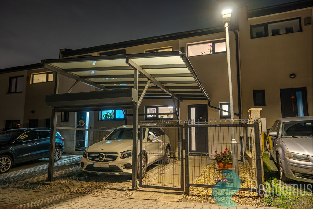 K domu náleží také předzahrádka o velikosti 25 m², jejíž součástí je kryté parkovací stání.