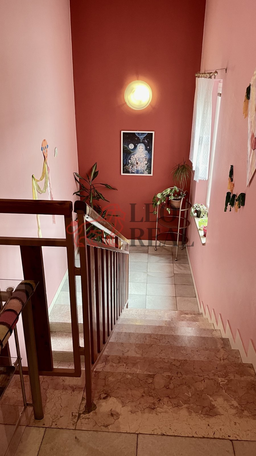V prvním patře je dům dispozičně řešen: Do ulice kuchyně a do zahrady dva pokoje s balkonem a vstupem do zahrady. Dále wc a koupelna. V etáži jsou tři pokoje, balkon do zahrady a koupelna s wc.
