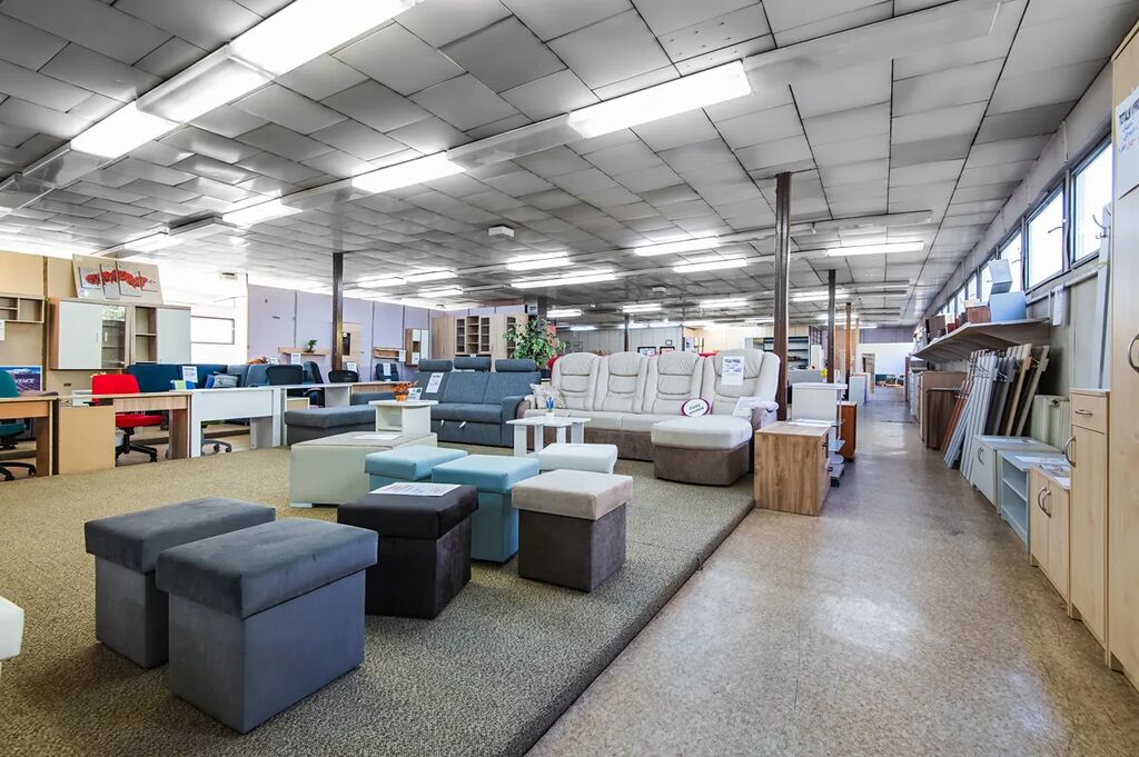V přízemí se nachází obchodní prostor (aktuálně prodejna nábytku), skladové zázemí a technická místnost. V prvním patře jsou další obchodní prostory, kanceláře a sociální zařízení.