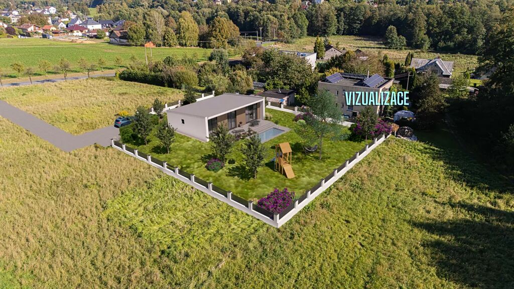 Nabízíme ke koupi dům na klíč situovaný v Horní Datyni, obci Vratimov. Tento projekt zahrnuje dřevostavbu, která se nachází na samostatném pozemku s celkovou plochou 1.200 m². Dům je přízemní s jedním podlažím a zastavěnou plochou 117 m², přičemž užitná plocha dosahuje 92 m². Vizualizace domu je pouze ilustrační, slouží pouze jako příklad možné výstavby na tomto pozemku.