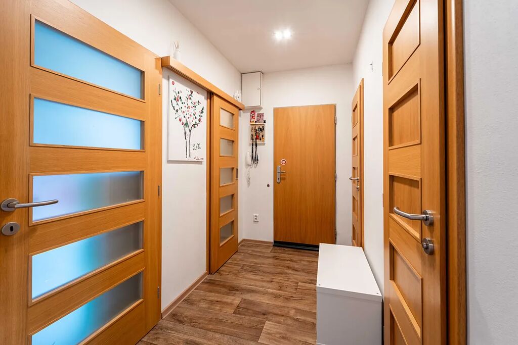 Byt prošel kompletní rekonstrukcí v roce 2015 a nabízí velmi příjemné bydlení s promyšlenou dispozicí: