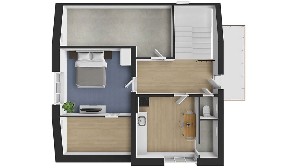 * Patro: dva velké pokoje a půdní prostory po nedokončené rekonstrukci, které lze snadno upravit podle vlastních představ, terasa, místnost pro WC