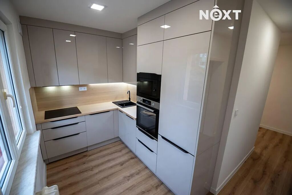 Byt se pyšní krásnou moderní kuchyní, která je zcela vybavena novými spotřebiči: pračka, lednice, klasická i mikrovlnná trouba. Bude doplněn i nový rám postele a šatní skříně v předsíni. Dominantou bytu je opravdu velkorysý balkón, kde si můžete udělat letní obývák nebo zimní zahradu.