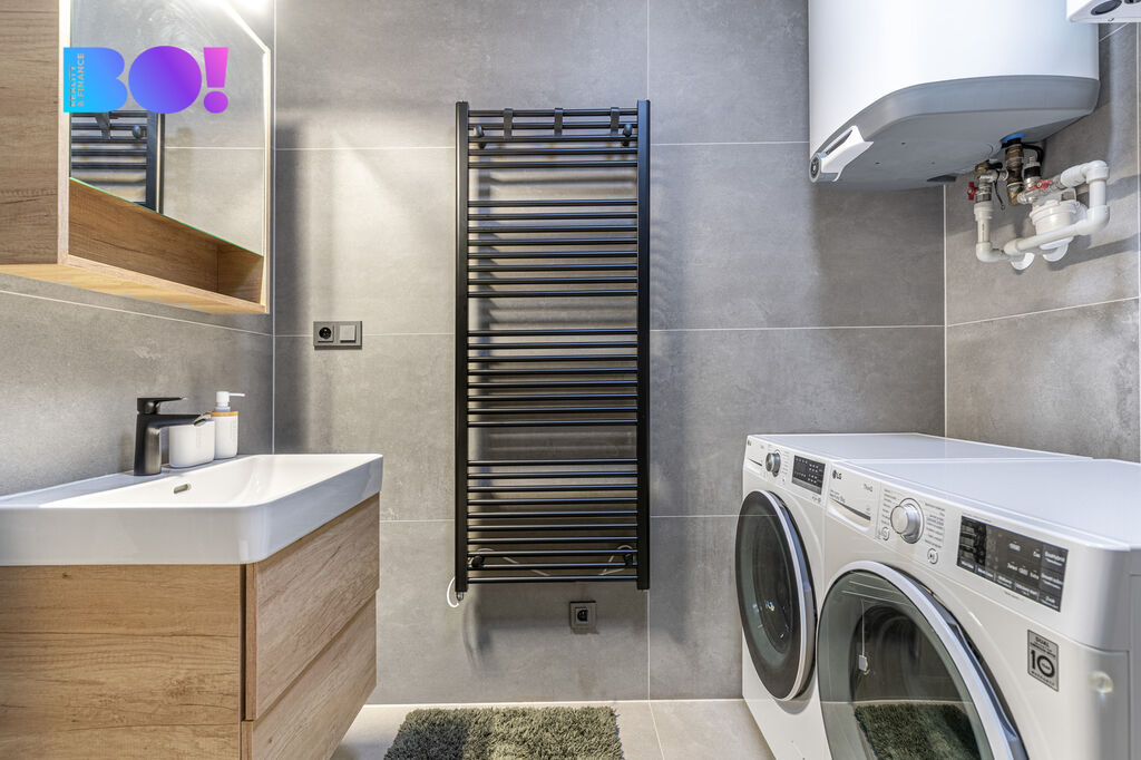 Byt je částečně vybaven, moderní kuchyňskou linkou se spotřebiči a také samostatnou šatnou, která poskytuje dostatek úložného prostoru. K bytu náleží prostorná terasa, ideální pro odpočinek a relaxaci na čerstvém vzduchu a také garážové stání.
