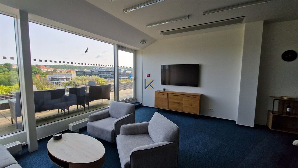 BEZ PROVIZE! Pronajměte si moderní kancelářské prostory o ploše 249 m² v prestižním komplexu DOCK IN TWO, jen pár kroků od Vltavy. Součástí jednotky je soukromá terasa 42 m² s přímým vstupem z kanceláře v 5. patře – ideální pro odpočinek nebo neformální setkání. K dispozici je vlastní kuchyňka, privátní vstup, možnost nábytku, flexibilní uspořádání a až 3 parkovací stání.