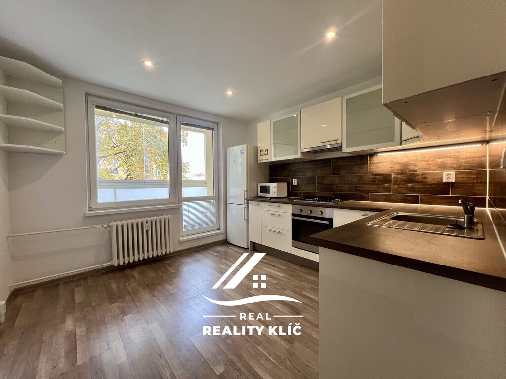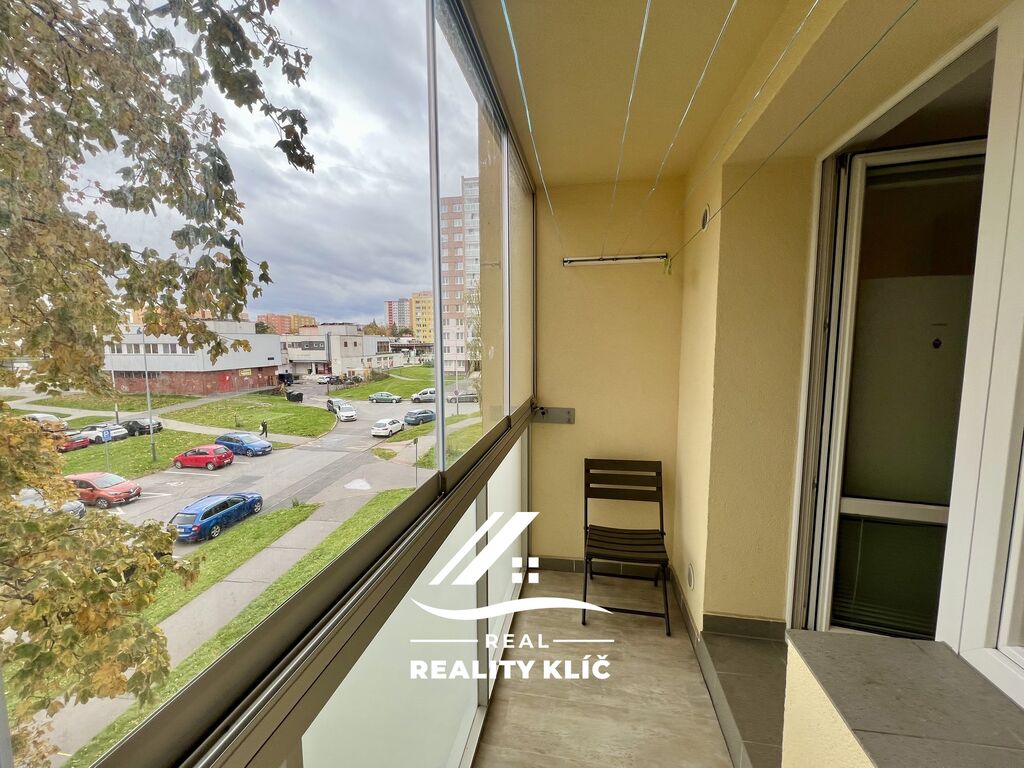 Dominantou bytu je světlý obývací pokoj vybavený gaučem, z něhož je přístup do samostatného pokoje vhodného jako dětský pokoj či ložnice. Dále se zde nachází další samostatný pokoj vhodný jako ložnice. Kuchyň je vybavena kuchyňskou linkou včetně spotřebičů a jídelního stolu.Z kuchyně je poté přístup na prostornou zasklenou lodžii orientovanou na jihovýchod. Koupelna je vybavena vanou, umyvadlovou skříňkou a zrcadlem, WC je samostatné.