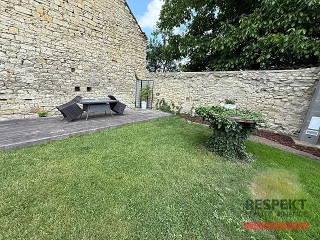 Výhodou je prostorný klenbový, opukový sklep (47,9 m2) s výškou stropu až 4,1 m se stálou, ideální teplotou pro zřízení vinného sklepa. Příjezd na pozemek je zajištěn dvoukřídlými dřevěnými vraty. Bonusem domu je rovinatá zahrada, skrytá před zraky sousedů, s možností postavení párty stanu pro pořádání akcí.