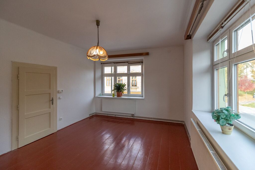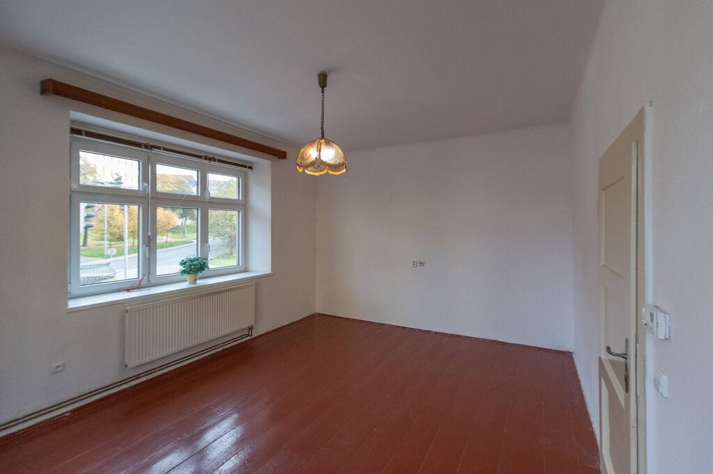 Nabízíme prodej velkého bytu 2+1 o výměře 81,91 m2 v 1. patře ve zděném měšťanském bytovém  domě, nedaleko centra města Klatov, ul. Tyršova. Dům byl postaven cca před 110 lety, prošel postupnou modernizací a nyní působí opět velmi svěžím a udržovaným dojmem. Fasáda domu je nově zateplená, okna vyměněna za plastová s izolačním dvojskly, což zajišťuje nízké provozní náklady. Díky orientaci oken do ulic i s výhledy na dominantu Černé věže a centrum města je byt příjemně prosvětlený a vzdušný. Dispozice bytu: prostorný pokoj (23,11 m2), další pokoj (21,65  m2) s původní dřevěnou podlahou a samostatnou kuchyní  (17,90  m2) s el. sporákem. Dále koupelna