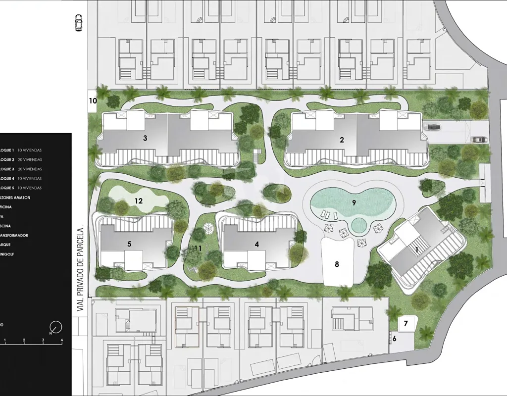 Komplex tvoří uzavřená komunita s privátními společnými prostory a řadou luxusních služeb.