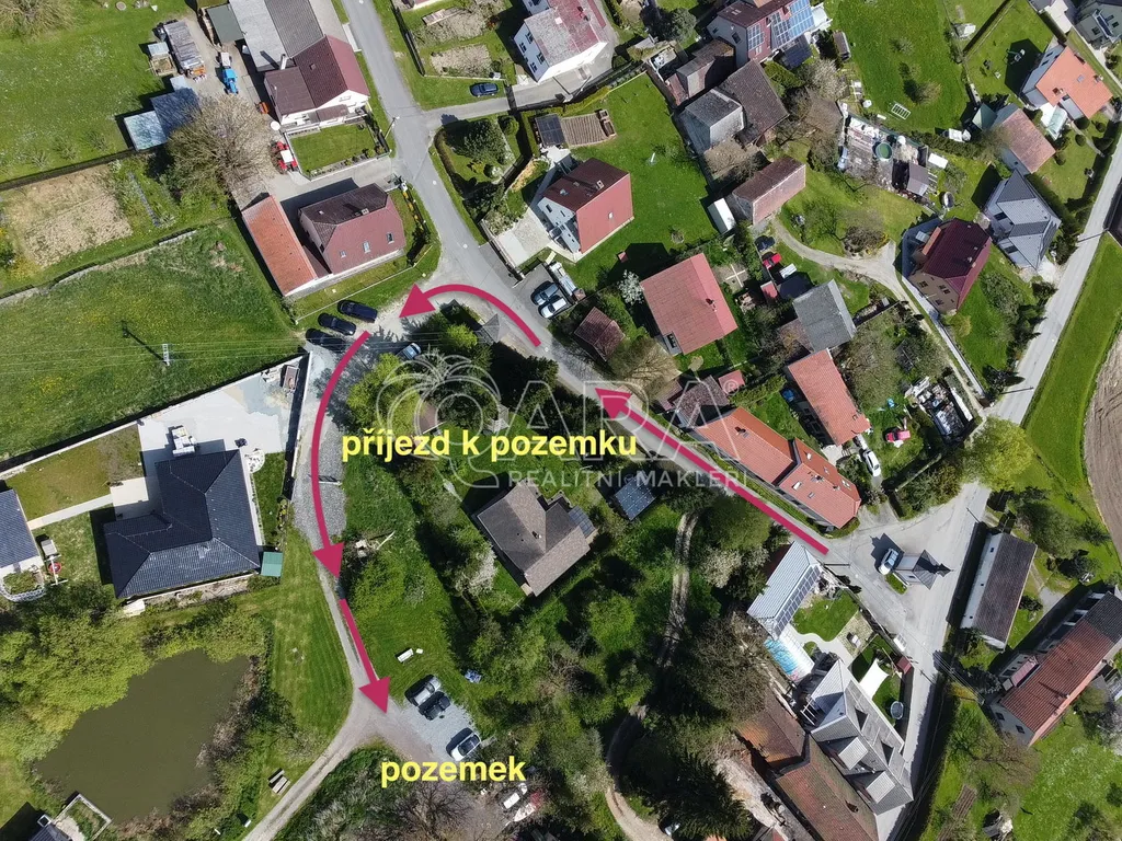 Příjezd zajišťuje asfaltová komunikace, jejíž podíl bude též součástí prodeje. Dále bude vybudována nová společná příjezdová cesta ze západní části parcely. Aktuálně používaná štěrková cesta vedoucí přes pozemek není vedena jako oficiální komunikace.