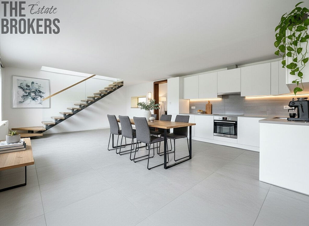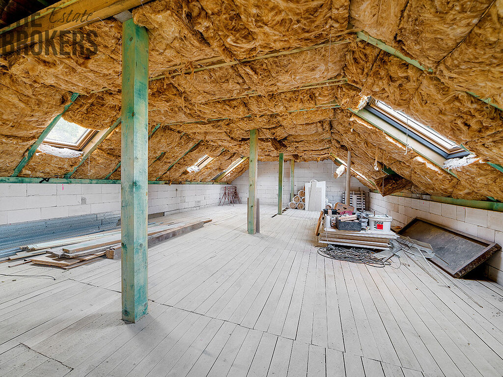 Patro je otevřené a připravené k dostavbě, díky čemuž si můžete vytvořit rozložení přesně podle svých potřeb s prostornou ložnici a šatnou, dětskými pokoji nebo relaxační zónu.