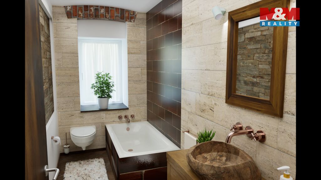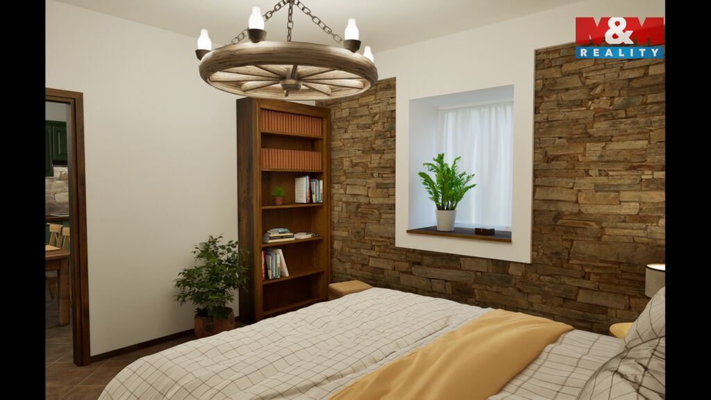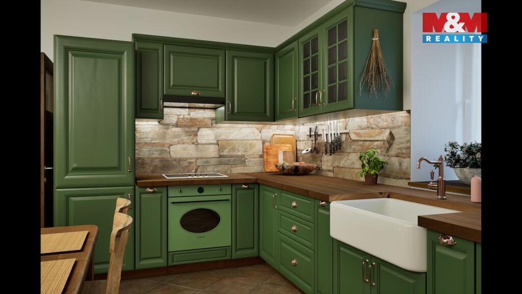 Tento byt se nachází v 1.NP rekonstruovaného domu, ve kterém je více bytů venkovského stylu. Byt má 65 m2 a je tu vstupní chodba, obývací pokoj s kuchyňským koutem, dvě ložnice, koupelna s vanou, umyvadlem a WC, dále pak komora. Orientace bytu je východ a západ. V bytě byly opraveny a ponechány původní opukové zdi, v obývacím pokoji jsou i dřevěné trámy, které umocňují venkovskou atmosféru bydlení.