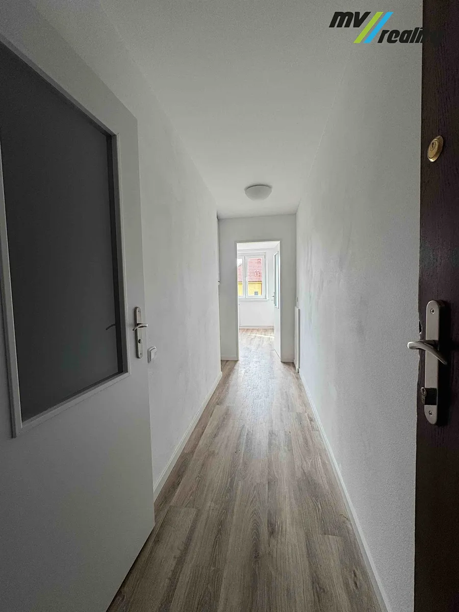 Byt sestává z předsíně, hlavního obytného pokoje s novou kuchyňskou linkou a moderní koupelny.