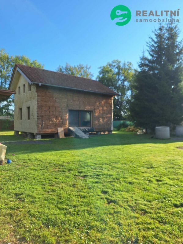 Prodám rozestavěný dům, slaměno-hliněný na betonových základových pasech a patkách. Dřevěná konstrukce, slaměné balíky, omítka vápeno písčitá. Dům má zastavěnou plochu 75m2, užitnou 93m2, dispozičně bude jako 3kk. Vnitřky nedodělané, ale v současné době probíhají elektro a vodo instalační práce, vnitřní příčky, pobití farmacel deskami.
