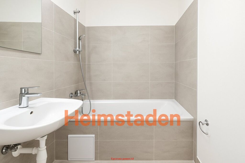 V celém bytě budou nové plovoucí podlahy v šedém dekoru, které interiéru dodají moderní a příjemně čistý vzhled. Koupelna bude laděna do šedých tónů s vanou, toaleta je samostatná.