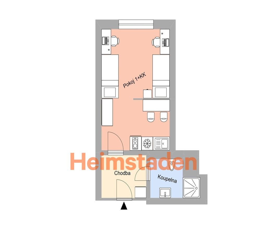 Byt se nachází v moderním domě s výtahy a působí vzdušně a útulně. Obývací část je vybavena dvěma jednolůžkovými postelemi, které lze snadno spojit do prostorné manželské postele. Součástí je moderní kuchyňská linka se spotřebiči včetně lednice a varné desky, a koupelna se sprchovým koutem a toaletou. Byt je kompletně zařízený, takže se můžete ihned nastěhovat – bez dalších starostí a investic.