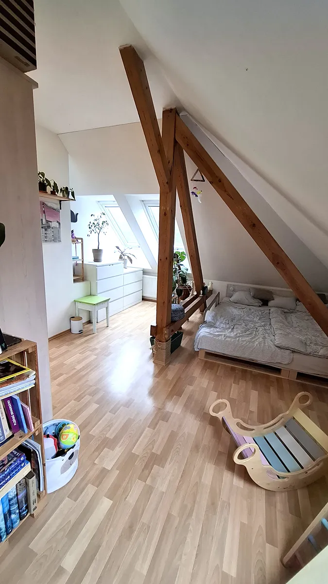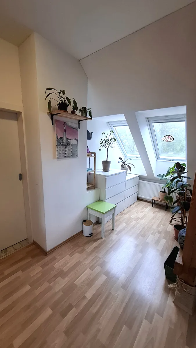 Nabízíme k pronájmu jedinečný podkrovní byt 2+kk, který se nachází ve druhém patře menšího bytového domu v Plzni v ulici Pod Záhorskem. Jediný byt na patře nabídne budoucím nájemníkům příjemných 76m2 + prostornou šatnu o velikosti dalších 6m2.
