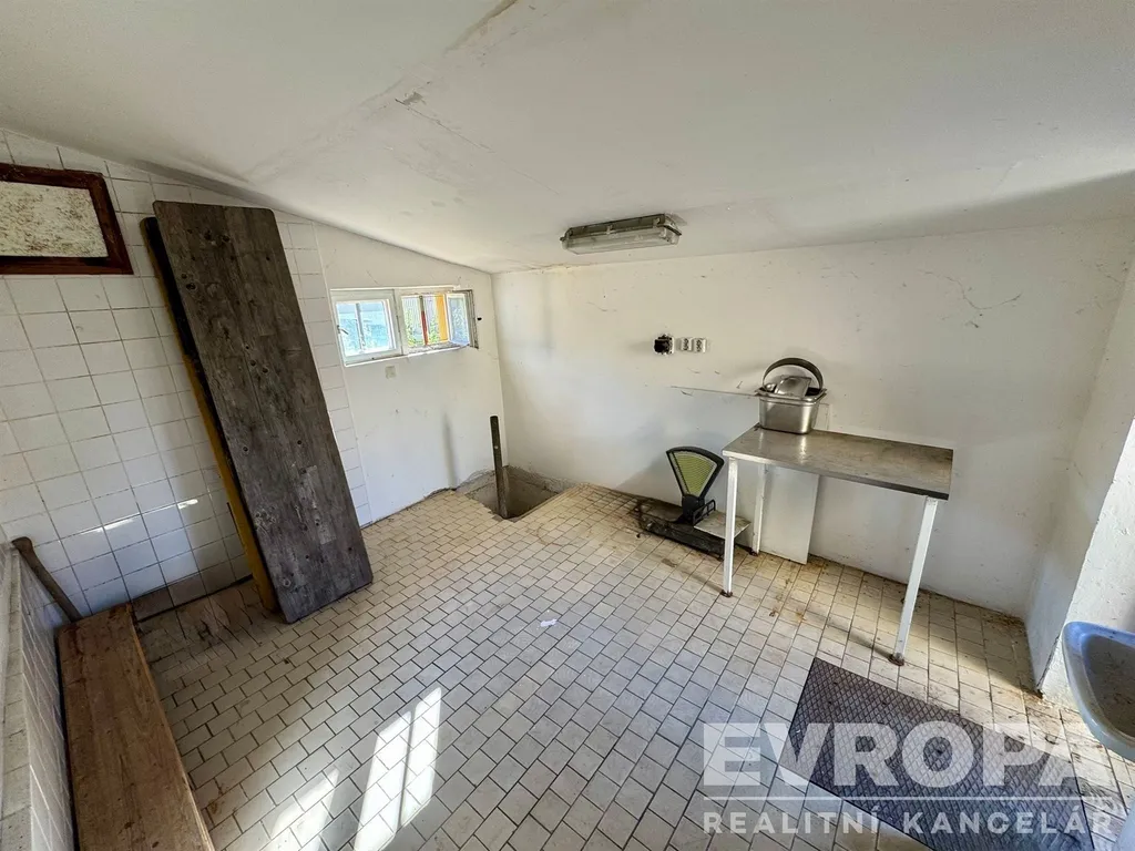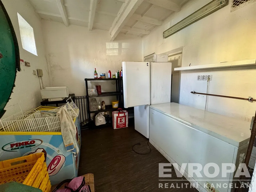Prostory zahrnují kuchyni, mrazák 4m2, umývárnu, sklady, sklep, sociální zařízení, šatnu a komoru na úklid.
