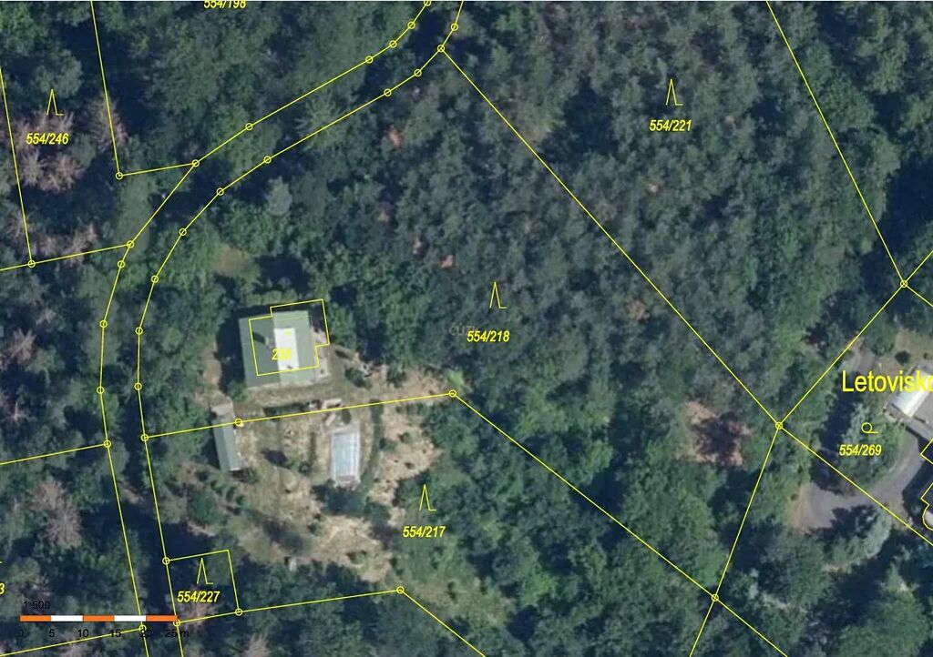 Jedná se o lesní pozemek v rekreační lokalitě Na vyhlídce, obec Slapy, na řece Vltavě, uprostřed pozemku se nachází rodinný dům č. p. 198, který je součástí p. č. st. 235, k. ú. Slapy nad Vltavou (jiný vlastník). Dle Lesního hospodářského plánu se jedná o les hospodářský, převažuje však rekreační funkce lesa nad produkční. Užívání nezbytného okolí rodinného domu č. p. 198 je ošetřeno nájemní smlouvou do 31. 12. 2028. Pozemek je historicky oplocen, přístupný kovovou bránou, uzamčen. V pozemku jsou uloženy inženýrské sítě (vodovod, přípojka NN, jímka), sloužící rodinnému domu Slapy č. p. 198, které nejsou smluvně ošetřeny věcným břemenem, rovněž přístup k výše uvedenému rodinnému domu není smluvně ošetřen, předpoklad vymezení rozsahu věcných břemen viz GP č. 591-108/2022. Obec Slapy nemá schválen nový územní plán, v současné době není pozemek zastavitelný.