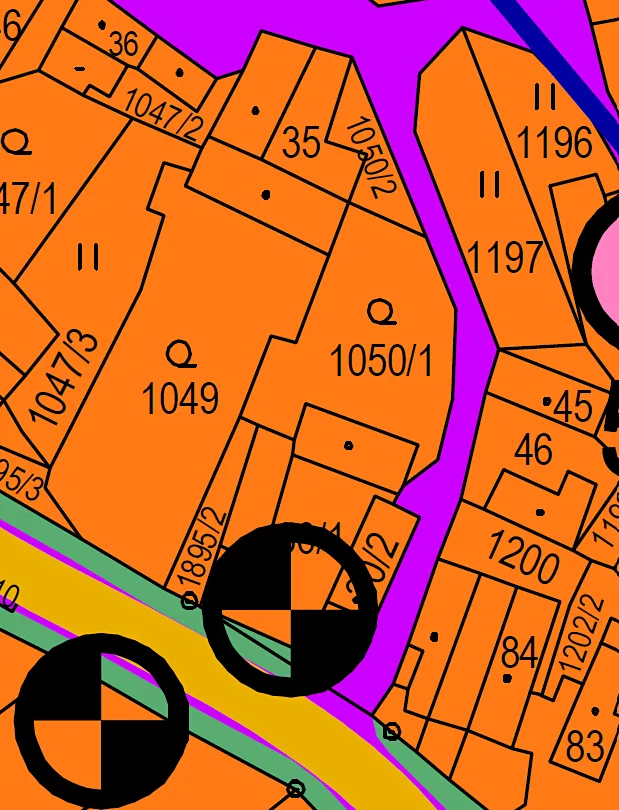 Pod budovou se nachází samostatný stavební pozemek parc. č. 1050/1 o výměře 531 m², který je součástí prodeje.
