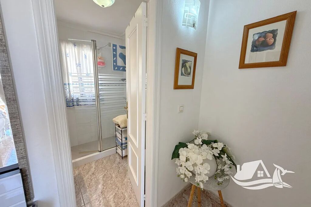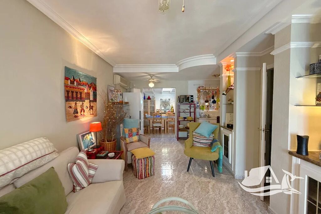 V oblíbené oblasti La Regia, na pomezí letovisek Cabo Roig a La Zenia, se nachází tento krásně udržovaný jihově orientovaný řadový dům, který nabízí perfektní kombinaci pohodlí, lokality a středomořské atmosféry. Dům leží jen 10 minut chůze od pláže a v pěší vzdálenosti od rušného Cabo Roig stripu i nákupního centra Zenia Boulevard – ideální místo pro trvalé bydlení i dovolenou u moře.