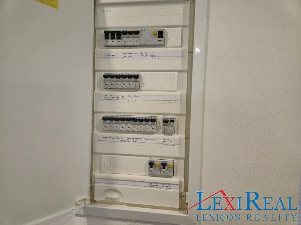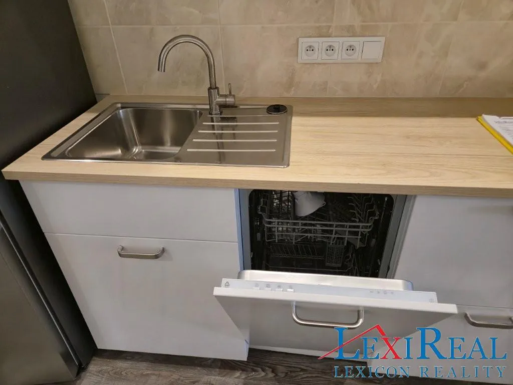 Na podlaze je položen vinil. Kuchyň je vybavena spotřebiči, lednice s mrazákem, elektrická trouba, plynový sporák, digestoř, mikrovlnná trouba, myčka nádobí.