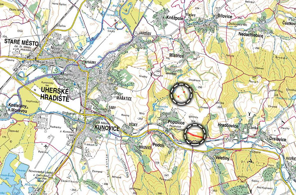 Popovice leží mezi Uherským Hradištěm a Uherským Brodem.