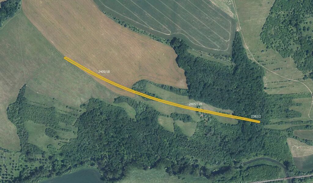 Parcela 2405/120 je trvalý travní porost s výměrou 2 811 m². Navazující parcela 2405/18 je orná půda o výměře 2 044 m².