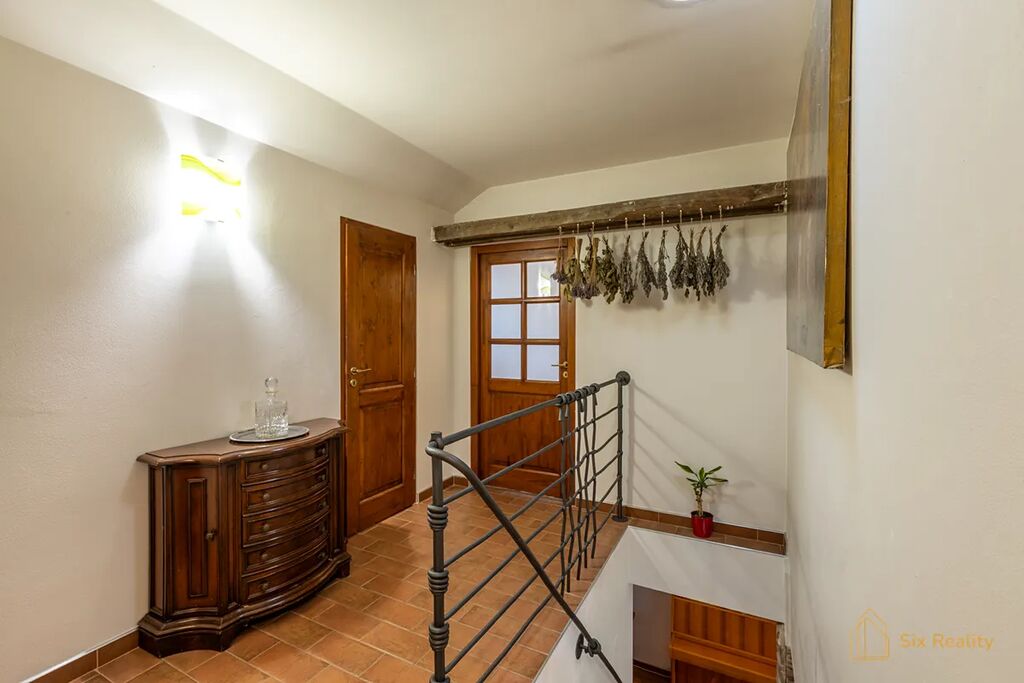 Rodinný dům s dispozicí 6+kk a výměrou 245 m2 celkové užitné plochy disponuje přízemím, obytným podkrovím a suterénem. Z obývacího pokoje v přízemí, kde budete trávit nejvíce času je vstup přímo na zahradu, kde vás uchvátí naprosto famózní výhled do krajiny přes koruny stromů.