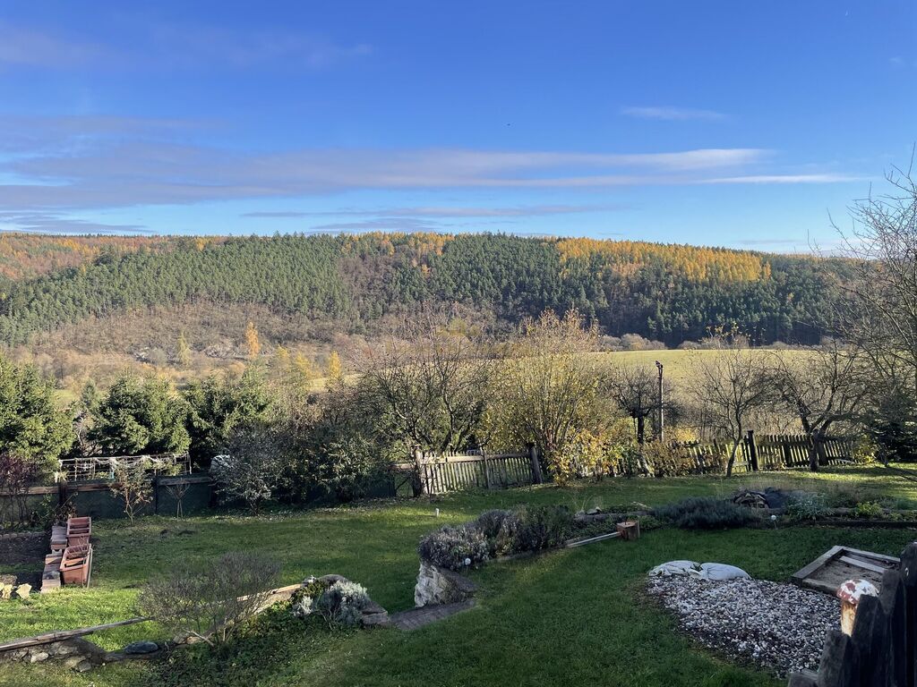 Dům se nachází na rovinatém, zatravněném pozemku s nádherným výhledem do okolní krajiny. Lesy a louky v bezprostřední blízkosti dodávají místu výjimečnou atmosféru a inspirují k aktivnímu odpočinku. Zahradu lze přetvořit dle individuálních potřeb a fantazie.
