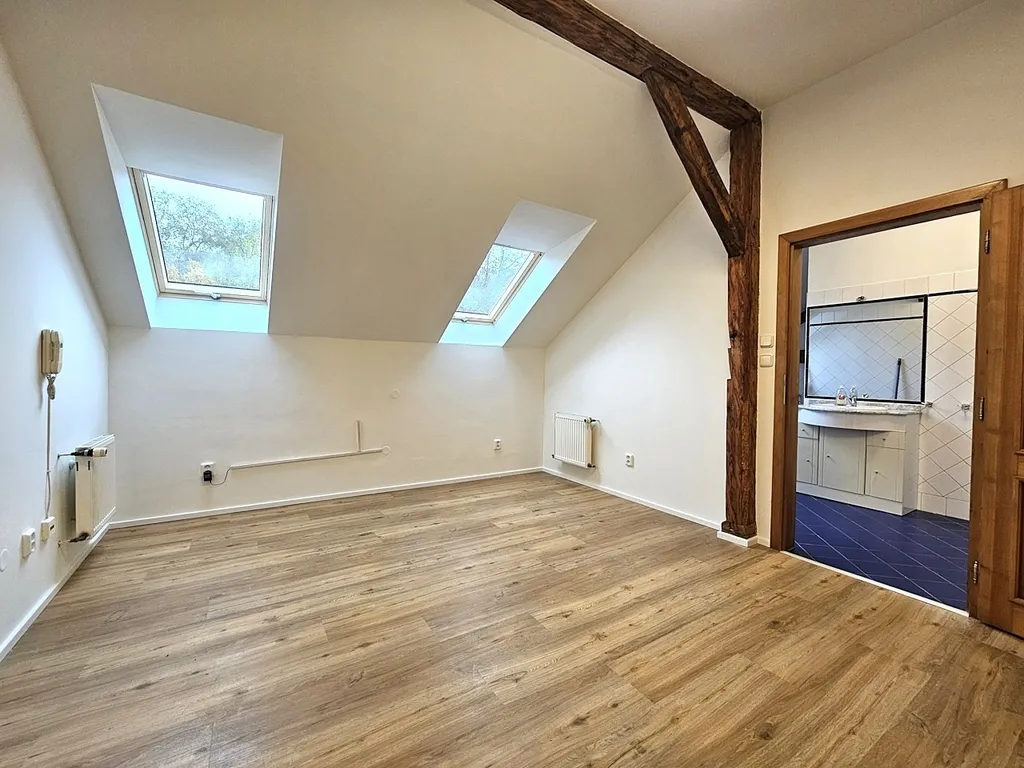Prostor je po nákladné, právě dokončené rekonstrukci, při které byly vyměněny všechna střešní okna, položen kvalitní vinyl, nainstalována nová kuchyňská linka a proběhla kompletní výmalba. Prostor sestává ze vstupního schodiště (8,21 m2), 4 průchozích místností (22,51 m2, 16,77 m2, 9,07 m2, 13,23 m2), koupelny s WC (7,92 m2) a 1 neprůchozí místnosti, ve které je i klimatizační jednotka (26,28 m2). Prostor je nezařízený nábytkem. K dispozici je nová kuchyňská linka s novými spotřebiči – indukční vařič, lednice a mikrovlnná trouba. V prostorné koupelně je umývadlo, WC, vana i sprchový kout. Na podlaze je nový vinyl a dlažba. Topení je ústřední - společný kotel na LTO pro celý dům, který je možné ovládat samostatným termostatem. Prostor je možné mít zabezpečený alarmem od společnosti Jablotron, který je napojený na CPO a to za 400 Kč měsíčně.