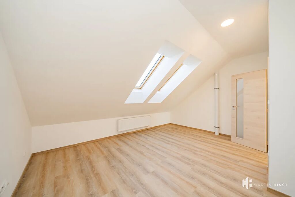 Nabízíme k pronájmu prostorný byt 5+kk o velikosti 154 m² ve Zloníně, ulice Za Humny, umístěný v patrovém cihlovém domě na 2. a 3. podlaží. Byt disponuje dvěma koupelnami, přičemž jedna je vybavena vanou, druhá sprchovým koutem a dvěma toaletami. Byt nabízí klidné bydlení v centru obce, s možností parkování na přilehlém pozemku. Dětská skupina s provozem v přízemí (Po-Pá 8-17h) nepředstavuje pro nájemce žádné rušení, do bytu se prochází společnou chodbou.