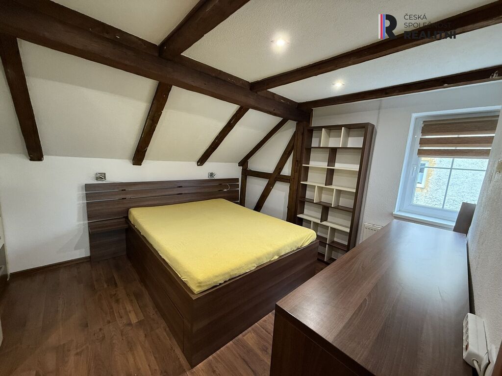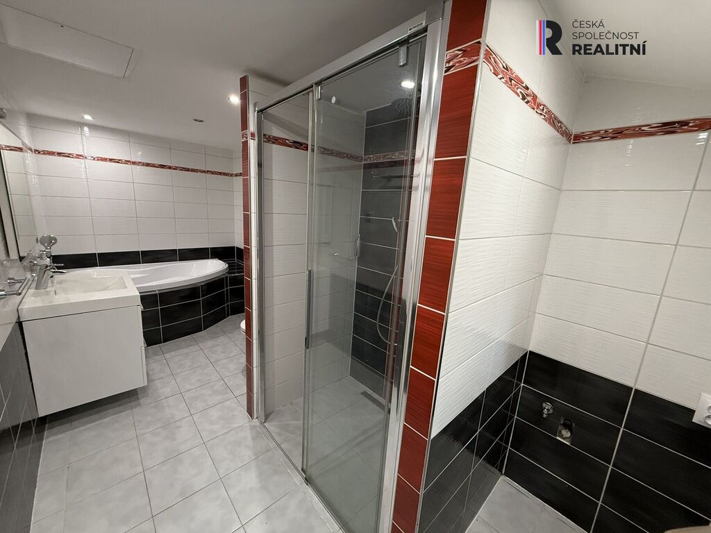 V patře je předsíň s psacím stolem a šatnou, dvě ložnice – jedna z nich má vlastní toaletu a vstup na terasu s příjemným výhledem. Druhá ložnice je vybavena vestavěným nábytkem na míru od truhláře.