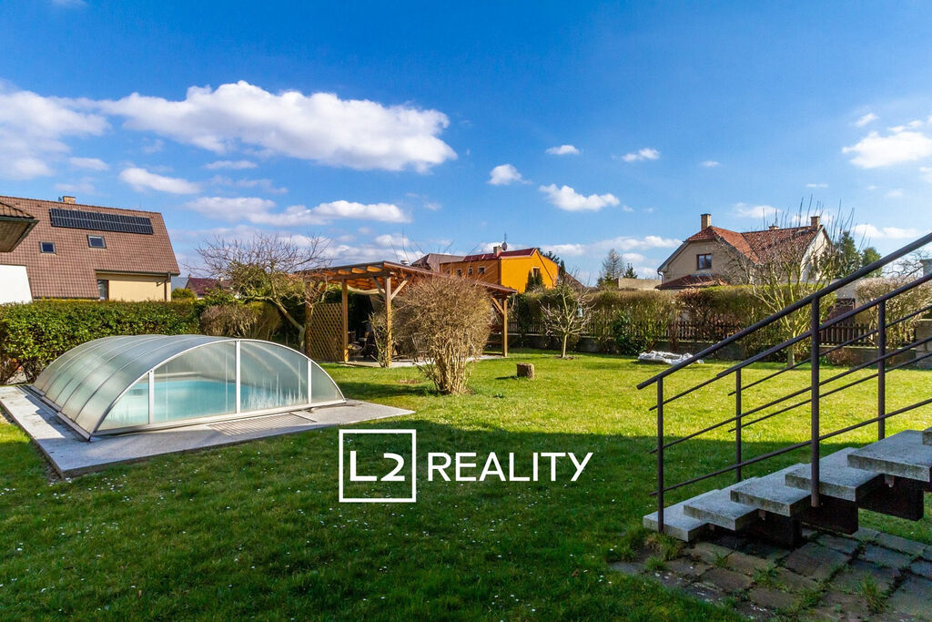 Do tiché rezidenční části Čelákovic plné zeleně, je zasazen vícegenerační rodinný dům, který nabízí klid, soukromí a pohodové bydlení. Součástí domu je venkovní krytý bazén, jižně orientovaná terasa navazující na obývací pokoj a prostorná, pečlivě udržovaná zahrada se zastřešenou pergolou a krbem.