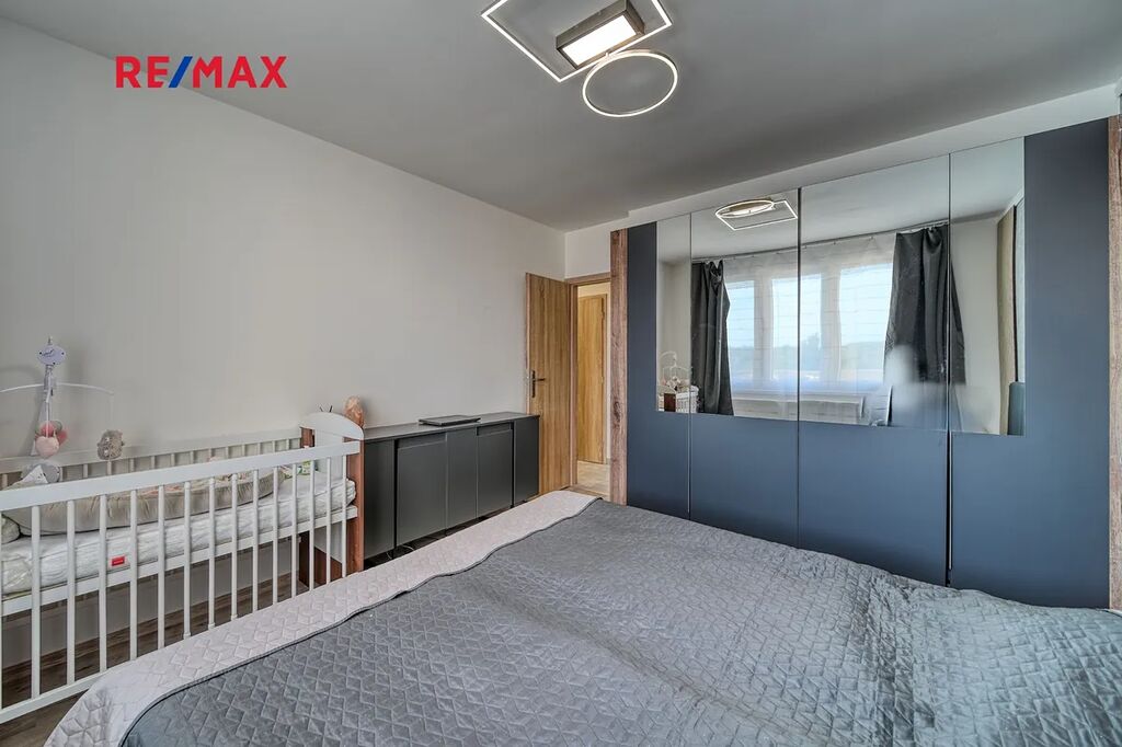 Interiér bytu působí svěže a útulně. Ložnice nabízí dostatek prostoru a klidný výhled do krajiny. Obývací pokoj s přímým vstupem na lodžii vás okouzlí sluncem a otevřeným výhledem.