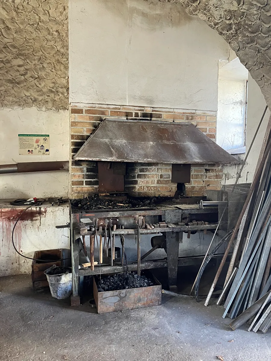 Dvůr uzavírá další budova s celkem 5 halami, kde je nyní dílna, 3 skladovací prostory a bývalá kovárna s 2-výhní, bucharem, hrubovací bruskou, soustruhem zn. HEID nebo frézkou TOS. Nalevo od vstupu do areálu statku je oddělený dvorek se zděným kioskem a venkovním posezením přístupný z obecní komunikace.