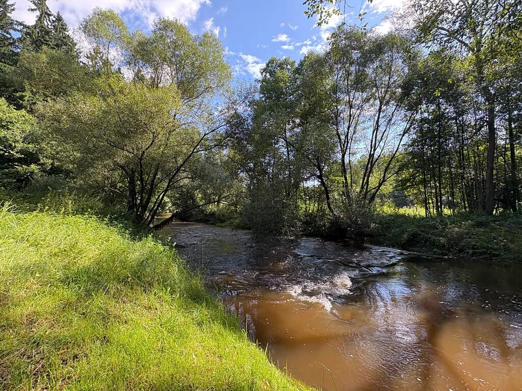 Součástí prodeje jsou pozemky v bezprostředním okolí nemovitosti, které mohou sloužit jako zahrada nebo parkoviště a k domu patří také část říčního břehu a vodního toku - náhonu a louky využívané na seno pro dobytek.