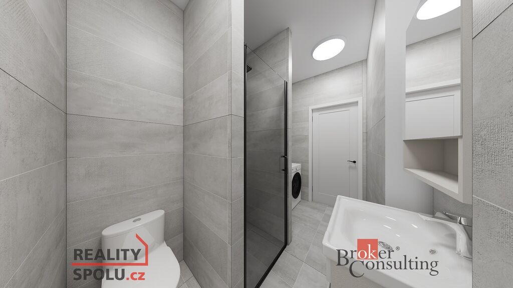 kompletně zrekonstruovaná koupelna s obklady, odpady a WC.
