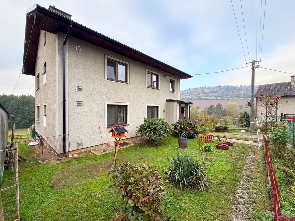 Hledáte domov, kde budete mít dostatek prostoru, kousek vlastní zahrady, garáž pro auto i místo, kde si konečně vydechnete? V rodinném domě se dvěma bytovými jednotkami nabízíme byt v přízemí o dispozici 3+1 s prostornou halou. K bytu patří také garáž, sklep a vyčleněná část zahrady, kde si můžete vypěstovat vlastní rajčata, udělat dětem pískoviště nebo si prostě jen užít klid s kávou a výhledem na přírodu.