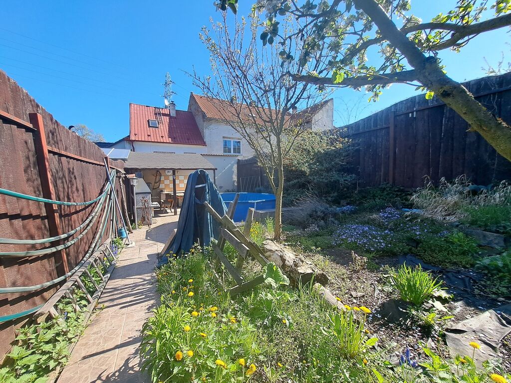 U domu je dvorek s betonovým povrchem, dále pak dřevník a dílna. Zahrada s posezením, venkovní kuchyní, udírnou, grilem, zpevněnou částí např. pro umístění bazénu a malý trávník, záhonky, strom. Oploceno dřevěným plotem.