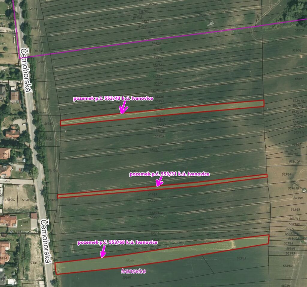 vše v k. ú. Ivanovice, obec Brno, okres Brno-město, které jsou zapsány u Katastrálního úřadu pro Jihomoravský kraj, Katastrální pracoviště Brno-město na LV č. 10001, pro k. ú. Ivanovice, obec Brno.