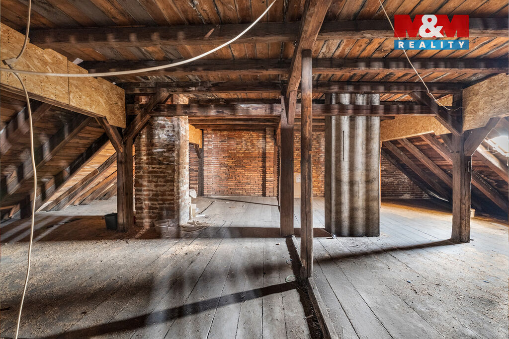 V druhém patře se rozprostírá rozlehlé podkroví, jež nabízí možnost vybudování dalších bytů či kancelářských prostor podle vlastních představ.