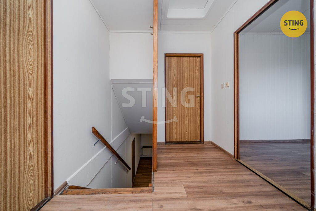 • 2. NP: Dřevěné schodiště vede do patra, kde se nachází tři pokoje, kuchyň a koupelna s WC.